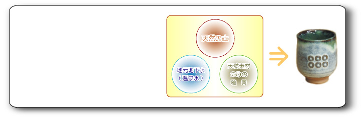 天然の土・天然の灰・そして地元の温泉水…200年前と変わらぬ製法で作り上げております。